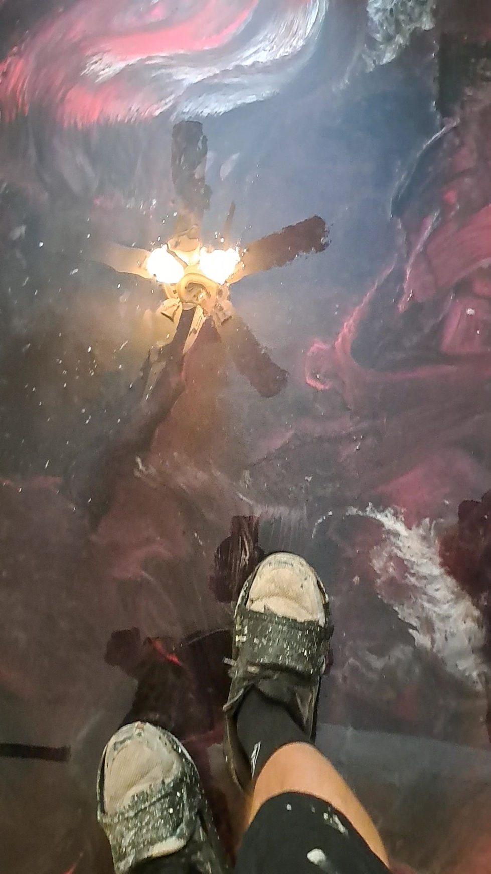 Explore our latest project: a custom red and black metallic bedroom floor that adds a vibrant touch to any space.